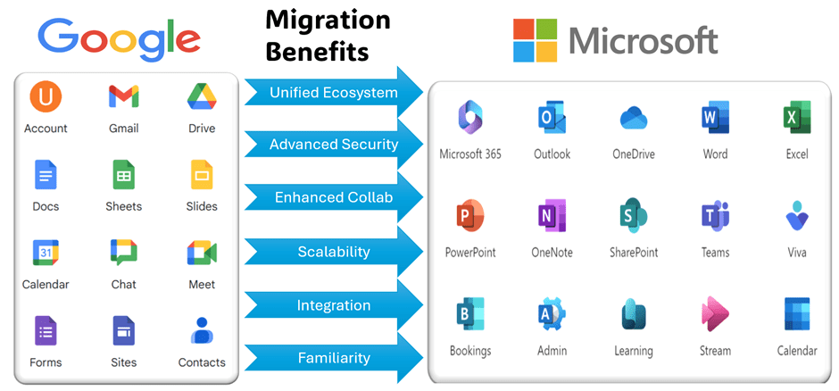Migrating mailboxes from Google Workspace to Microsoft 365 (formerly Office 365) offers several benefits