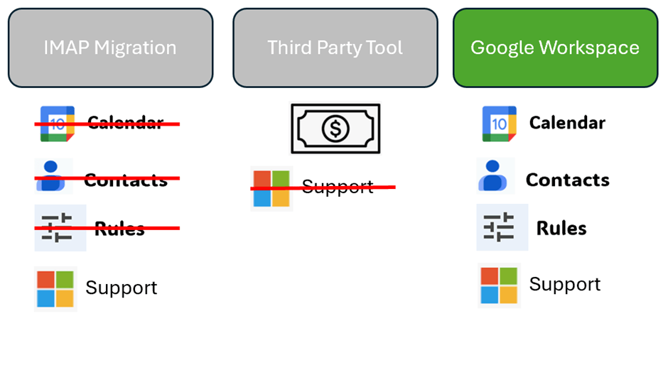 There are three methods to migrate using Google workspace.
